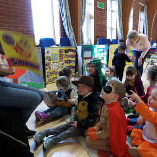 This week we enjoyed a visit from the mobile library, an opportunity to change our books and find some new favourites. Books, books and more books. We all enjoyed reading our favourite books this week. Some of our wonderful parents and grandparents brought in their favourite stories too, reading to the children wonderful tales of Super Tato, Owl Babies and Peter Rabbit. We were all very appreciative of their efforts and kindness; and our children were amazing too, incredible outfits celebrating book day worn with excitement and joy, "who am i?"'I'm the dragon from Lego" "the hungry caterpillar'" I'm Super Tato!" we had super heroes and dragons, Elsa and Christopher Robin. The children all keen to share stories and books; and even have a go at writing their own.